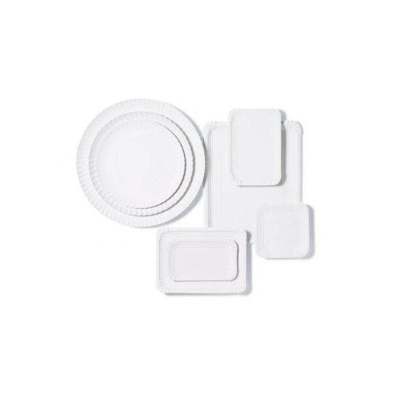 Bandejas de Cartón Rectangulares Blancas de 25x34cm, estas Bandejas están fabricadas en cartón 500gr/m2. Conocidas como Bandejas de Cartón para Pastelería o Bandejas de Cartón para Comida. Perfectas para la presentación de pasteles, tapas, tartas, quesos, canapes La mejor alternativa para respetar el medio ambiente y la naturaleza en tus eventos. Se pueden comprar en paquetes de 100 unidades o cajas de 400 unidades. Disponibles las blondas de papel para complementar las bandejas.