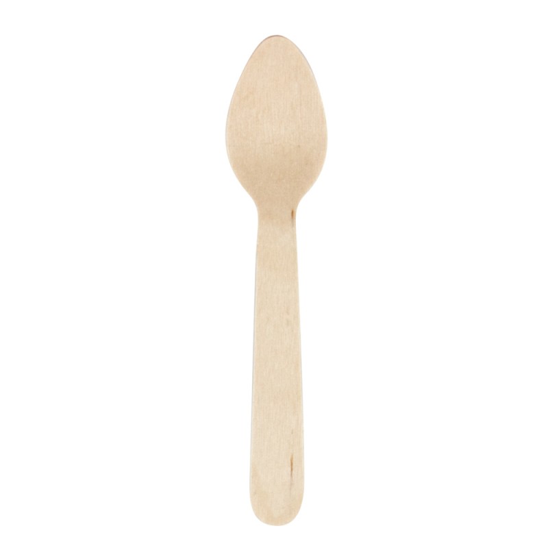 Cucharitas de Madera de 11cm, estas cucharitas están fabricadas en madera natural, también llamadas cubiertos madera desechables. Son 100% Biodegradables y Compostables, la mejor alternativa para respetar el medio ambiente y la naturaleza. Se pueden comprar en paquetes de 100 unidades o cajas de 2.000 unidades.