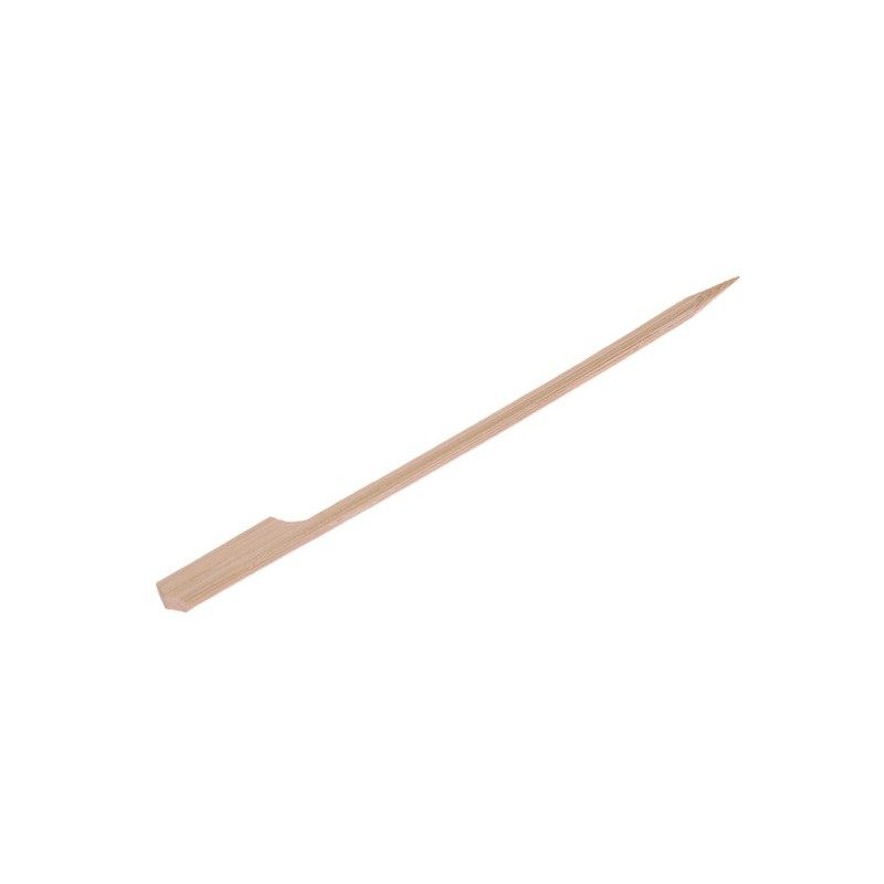 Pinchos de Bambú con Agarrador de 24cm, estos pinchos están fabricados en madera de bambú natural, también llamados pinchos de madera golf. Son 100% Biodegradables y Compostables, la mejor alternativa para respetar el medio ambiente y la naturaleza. Se pueden comprar en paquetes de 100 unidades o cajas de 1.000 unidades.