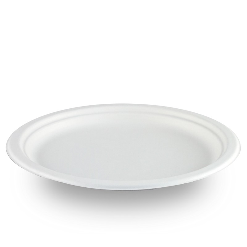 Platos Biodegradables blancos de 26cm, estos Platos Desechables Ecológicos están fabricados en caña de azúcar, conocidos como platos ecológicos. Son 100% Biodegradables y Compostables, la mejor alternativa para respetar el medio ambiente y la naturaleza. Se pueden comprar en paquetes de 50 unidades o cajas de 500 unidades. Aptos para microondas.