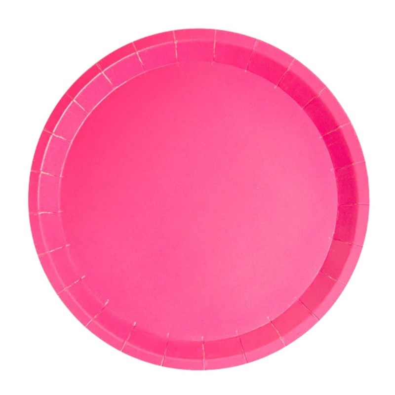 Platos Biodegradables Rosas de Cartón Redondos 20,5cm, estos Platos de Cartón Desechables Ecológicos están fabricados en papel verde, conocidos como platos de cartón ecológicos. Son 100% Biodegradables y Reciclables, la mejor alternativa para respetar el medio ambiente y la naturaleza. Se pueden comprar en paquetes de 10 unidades o cajas de 520 unidades. Aptos para alimentos secos y con bajo contenido graso.