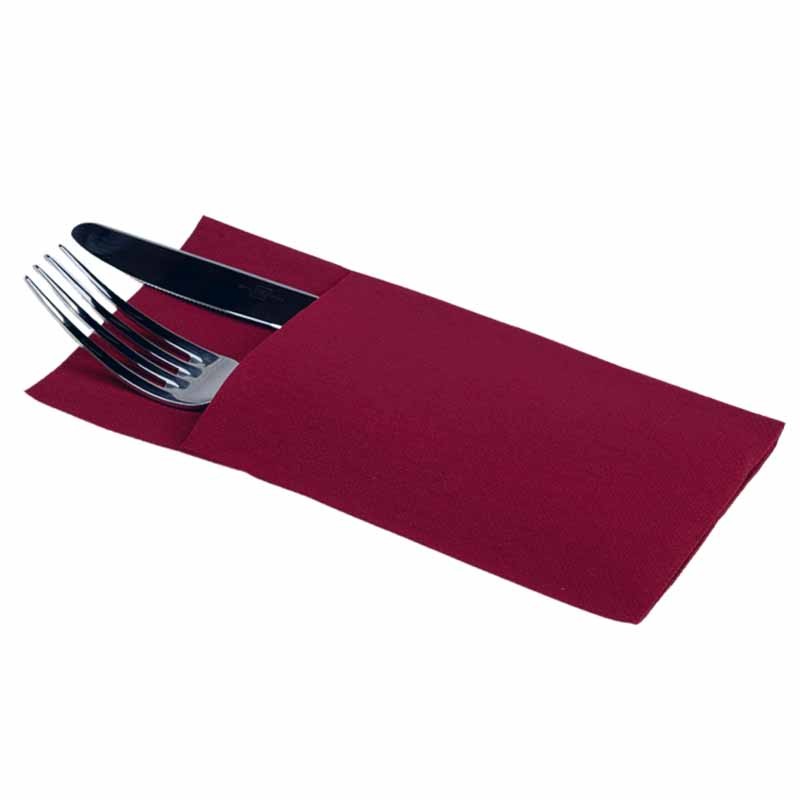 Servilletas Canguro de Papel Punta Punta Burdeos de 40x40cm, estas Servilletas de Papel Burdeos Portacubiertos están fabricadas con celulosa 100%, conocidas como servilletas de papel para cubiertos punta-punta. Son Biodegradables y Reciclables, la mejor alternativa para respetar el medio ambiente y la naturaleza. Se pueden comprar en paquetes de 30 unidades o cajas de 960 unidades.