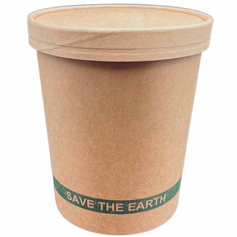 Tarrinas de Cartón Kraft con Tapas de 1.000ml, están fabricadas en cartón kraft + PE, conocidas como envases de cartón para comida, soperas de cartón, envases cartón para take away. Son perfectas para cualquier tipo de alimento tanto frío como caliente, sólido y líquido. Son 100% reciclables y la mejor alternativa para respetar el medio ambiente y la naturaleza. Se pueden comprar en paquetes de 25 unidades o cajas de 300 unidades.