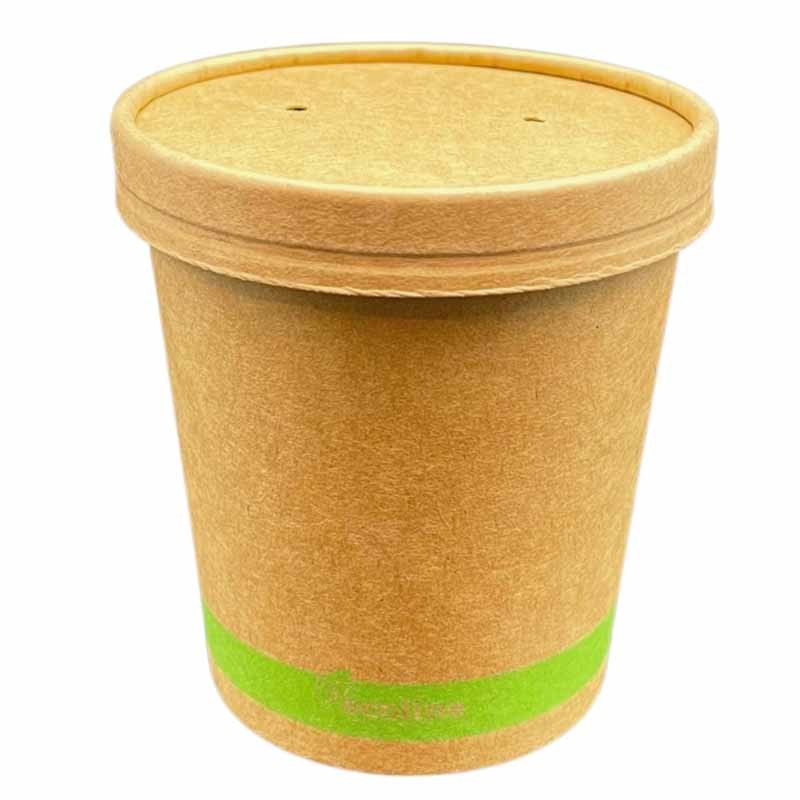Tarrinas de Cartón Kraft con Tapas de 450ml, están fabricadas en cartón kraft, conocidas como envases de cartón para comida, soperas de cartón, envases cartón para take away. Son perfectas para cualquier tipo de alimento tanto frío como caliente, sólido y líquido. Son 100% reciclables y la mejor alternativa para respetar el medio ambiente y la naturaleza. Se pueden comprar en paquetes de 25 unidades o cajas de 300 unidades.